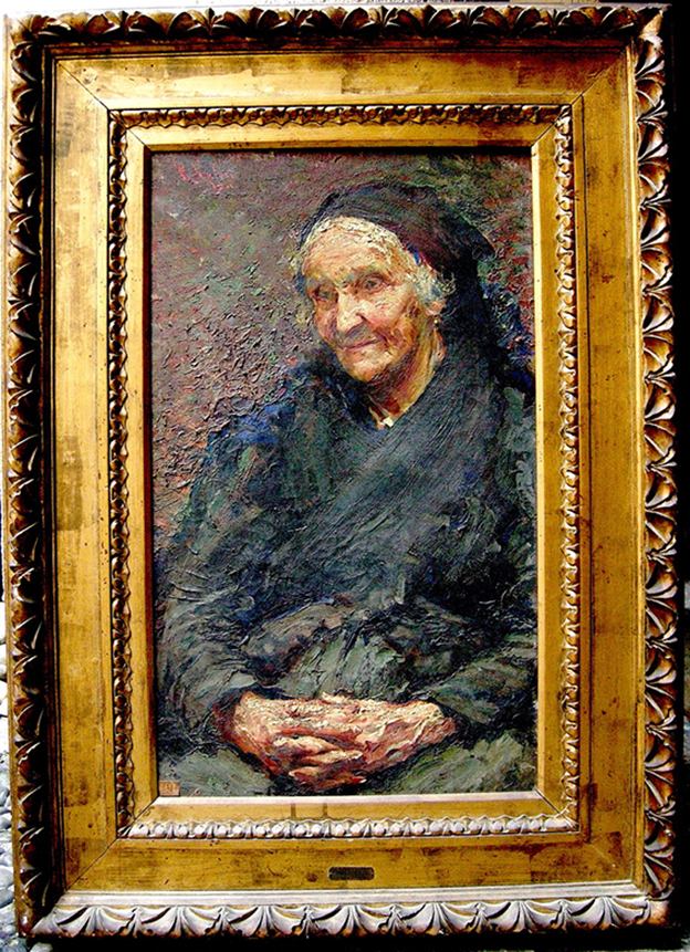 Romano Valori Milano, 1886 - Ospedale di Campo Vicenza, 1918 Romano Valori Vecchio ceppo, 1911 olio su tela cm 75 x 46 cornice originale, esposto con il n°131 Romano Valori bozzetto per “Autunno” olio su tavoletta con cornice originale